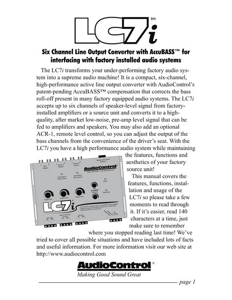 Lc7I Manual. Web audiocontrol lc7i user manuals. This manual is available in the following languages:.